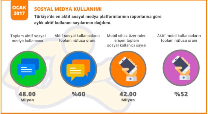 Türkiye’deki sosyal medya kullanıcılarının nüfusa oranla istatistiği.
