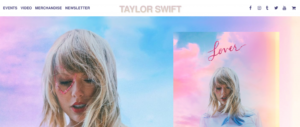 Taylor Swift’in şu anda bilinen en büyük pop yıldızlarından biri olduğu inkar edilemez. Sitesinde menüde dört seçenek bulunuyor. Etkinlikler, video, ürün ve bülten. Bağlantıların yarısı sayfanın daha aşağısında sona erer ve yalnızca kendi sayfalarına sahip etkinlikler ve ürünler kalır. Yani ürün dışında sadece iki sayfa var. Başlıca resim, albüm kapağı ve albüm kapağının yakından görünümü.