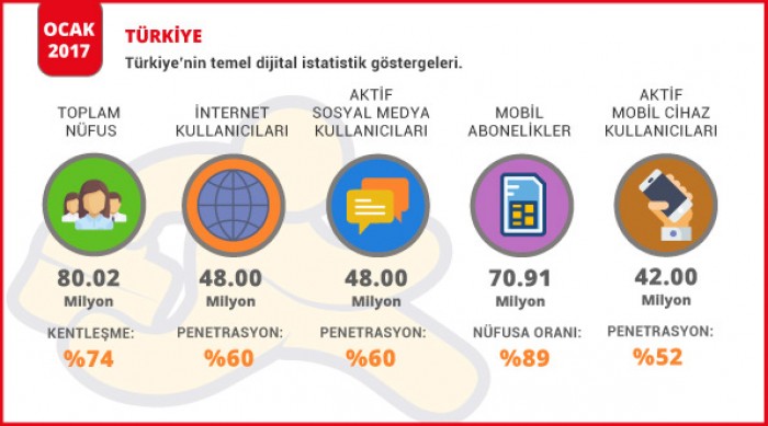 Türkiye’deki sosyal medya kullanıcılarının nüfusa oranla istatistiği.