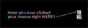 Aslında ilk banner ondan sonra yaratılacak bütün bannerların işlevini özetliyor; ‘’ Hiç faren ile tam BURAYA tıkladın mı? Tıklayacaksın. İşte o günden sonra biz tıklayamaya hep devam ettik.