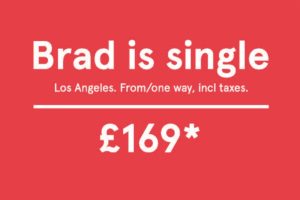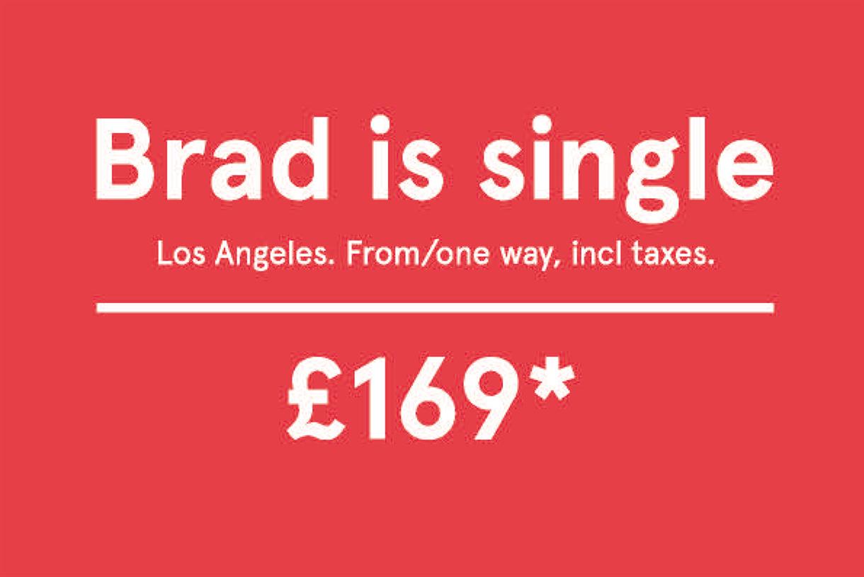 2016’nın eylül ayında magazin gündeminde taht kuran haber, şüphesiz ki Brad Pitt & Angelina Jolie çiftinin boşanma kararıydı. Bunun üzerine havayolu, “Brad bekar. Oslo – Los Angeles tek yön, vergiler dahil 169£!” metniyle basılı bir reklam oluşturuyor.