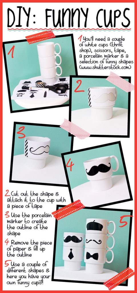 Instructographics insanlara nasıl bir şeyler yapılacağını anlatır. Örneğin, düz beyaz bardakların komik bıyık bardaklarına nasıl dönüştürüleceğine dair talimatlar aşağıda verilmiştir:
