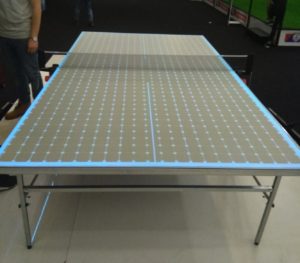 Bu akıllı masada yer alan yüzey, topun düşme yerini gösteriyor. Bunu yukarda olan sensörlerle yapıyor ve masa tenisi oynayan oyuncuların puanlarınıda yüzeyde gösterebiliyor.