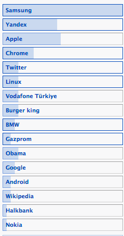 İkinci sırada yer alan marka ise yeni arama motoru Yandex oldu. Google’ın tekeline kafa tutan Rusya merkezli bu arama motoru, Türkiye’de ve dünyanın başka yerlerinde hızlı ve etkili bir yerelleştirme stratejisi izledi. Haritalar, sokak sokak panaromik görüntüleme ve özellikle de mobil trafik uygulamaları, bu arama motorunun kısa sürede tanınmasını ve kullanılır hale gelmesini sağladı.