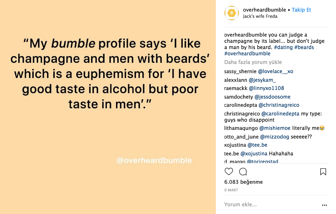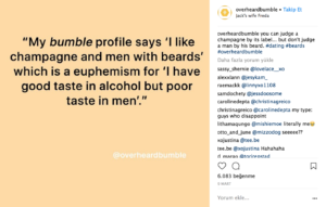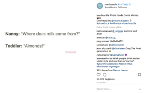 Bu hesaplardan en popülerleri OverheardLA 885 bin ve OverheardNewYork 583 bin takipçisi olan Instagram hesapları. Büyük şehirlerden Londra’nın da OverheardLondon hesabı var. Daha genel geçer bir tonu olan ve üniversite öğrencilerine hitap eden bir OverheardUniversity hesabı da mevcut. Bütün bu hesapların ise birleştirici bir teması var. Farklı şehirlerde yaşayan insanların benzer olan; absürtlük, mutluluk, partilemek, aşık olmak, spor yapmak ve trafikte kalmak gibi deneyimlerini sosyal medya hesabı olan herkesle alıntılarla paylaşabildiği hesaplar haline geldi.