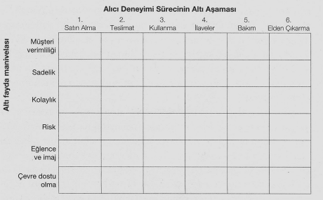 2004’te Mavi Okyanus Stratejisi adlı kitabı yazan Chan Kim ve Renée Mauborgne “Alıcı deneyimi” sürecini altı aşamaya ayırıyor: Satın alma, teslimat, kullanma, ilaveler, bakım ve elden çıkarma. Tabii her ürün ve hizmet için bu altı aşamanın altısını da saymak elbette mümkün değil, ama bu bize alıcı deneyimi üzerinde düşünebileceğimiz genel bir çerçeve sunuyor. Bu altı aşamada da müşteri deneyiminin iyi veya kötü, olumlu veya olumsuz olmasını belirleyen altı fayda manivelası (kaldıraç) bulunuyor: Müşteri verimliliği, Sadelik, Kolaylık, Risk, Eğlence ve imaj, Çevre dostu olma faydalarından oluşan bu kaldıraçlar, müşteri deneyimi sürecinin her aşamasında deneyimi iyileştirme fırsatı sunuyor. Tabii bunu yapabilmek için firma tarafında ciddi bir farkındalığın ortaya çıkması gerekiyor.