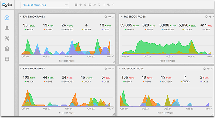 Cyfe, karşılaştığım en iyi araçlardan biri ve şok edici derecede birçok kişi tarafından bilinmemekte. Çevrimiçi işinizin her yönünü kontrol etmek için özelleştirilmiş widget’lar oluşturmanıza izin veren, tek bir işletme panosunda hepsi bir arada bulunan tablolar sunar.